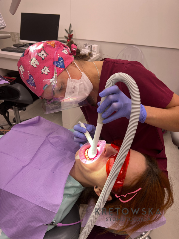 • kontrola zębów przez lekarza. Specjalista sprawdza, czy kamień i biofilm zostały całkowicie usunięte. Ocenia także zęby pod kątem występowania próchnicy.
